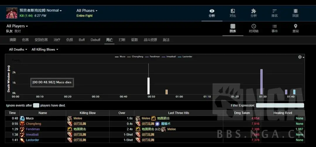 如果你是团长,或者你有兴趣,可以翻阅一下团员们都是怎么死亡的,你会发现各种各样离奇的死亡原因,这也是我平时喜欢查阅WCL的原因之一。