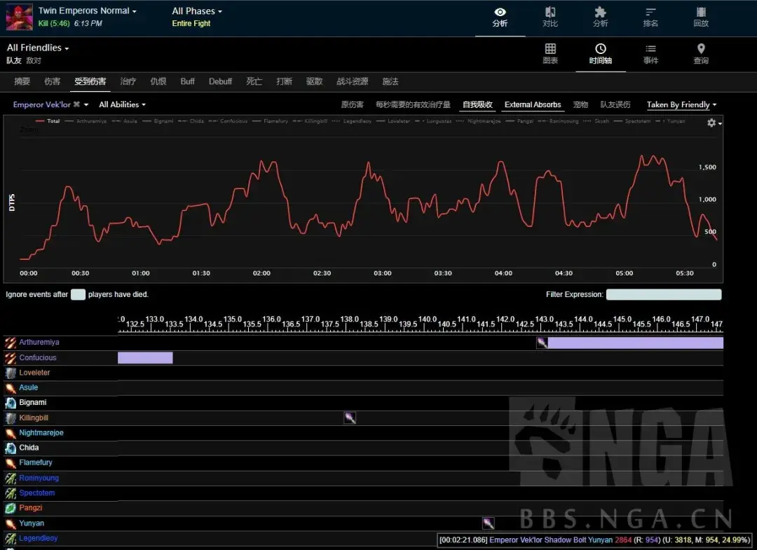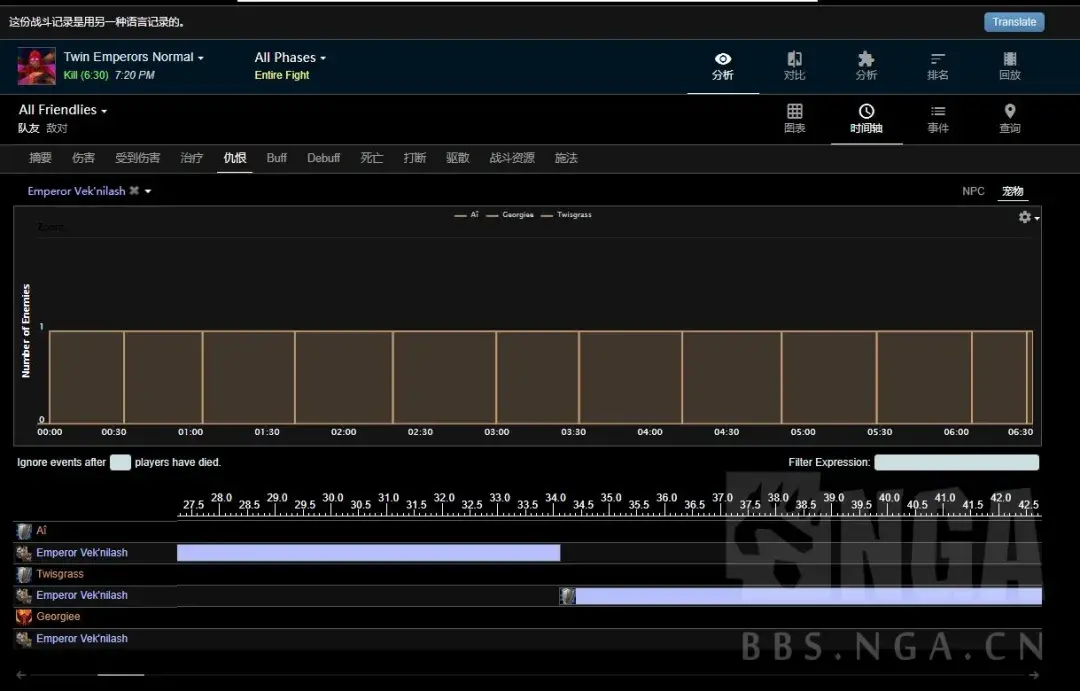 可以通过仇恨和时间轴,来查看OT/换T的情况。不仅仅是双子,其他boss谁OT了,都能通过这个方法看出来。