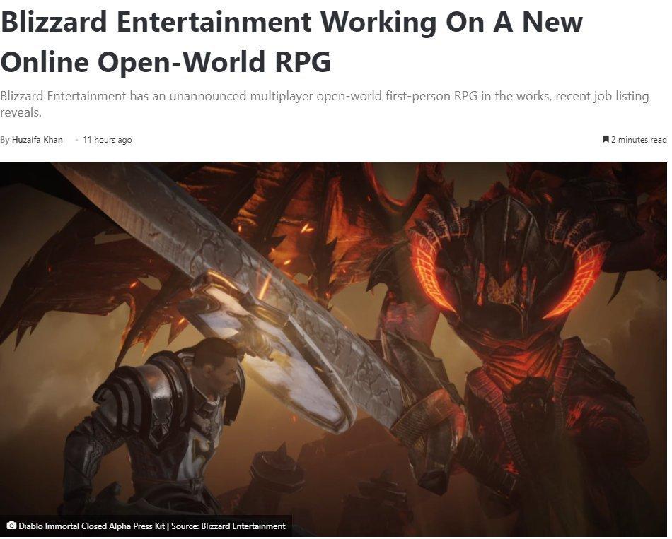 此外,最近外媒还报道称暴雪正在开发一款开放世界在线RPG游戏。