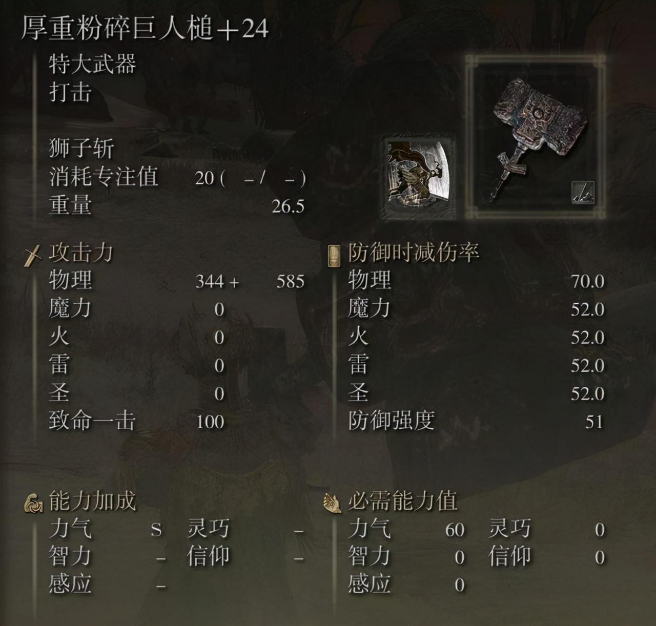 s的力量补正,我目前看到最高的物理面板,究极大鸡腿。打击系武器能更好应对结晶怪和重甲怪,如果能接受这个外形,而且有富余强化石推荐这个,我后期就把巨剑换成了这把武器。