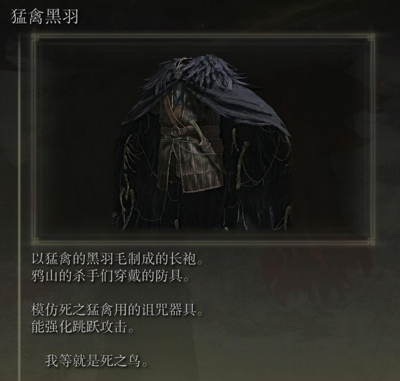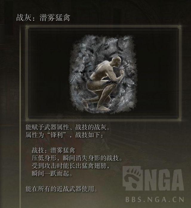 5、潜雾猛禽,就是只狼的雾鸦,这个我没拿到,以下都是云的,跳劈流战技,生存拉满,抠掉翻滚,双持巨剑双持大锤,你才是boss。最大的缺点就是获取难度太高,漏了斗笠哥的支线就下周目见了。