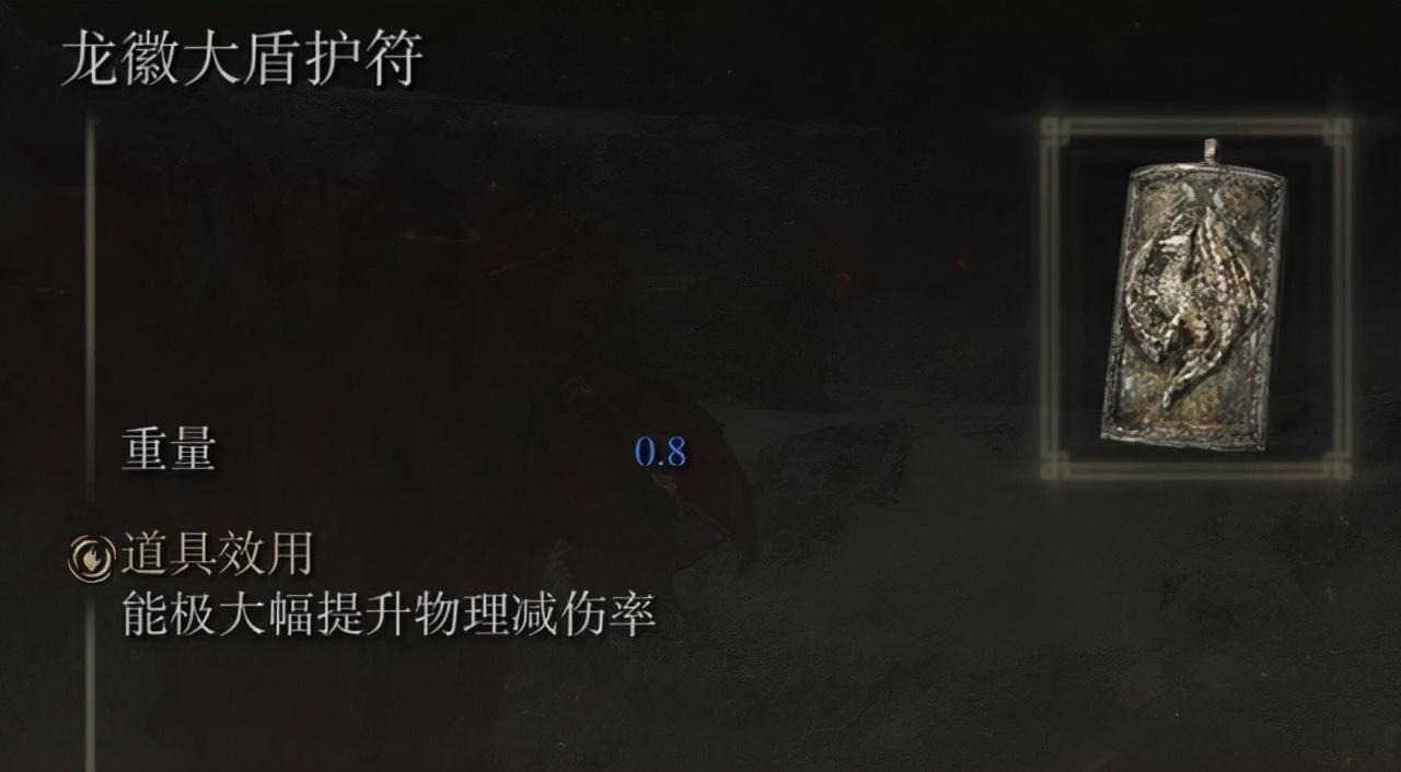 1、龙辉大盾护符,圣树获取,不过拿到圣树也差不多打完了,唯一+3级别的戒指,提供20%的物理减伤,非常可观,推荐常驻。