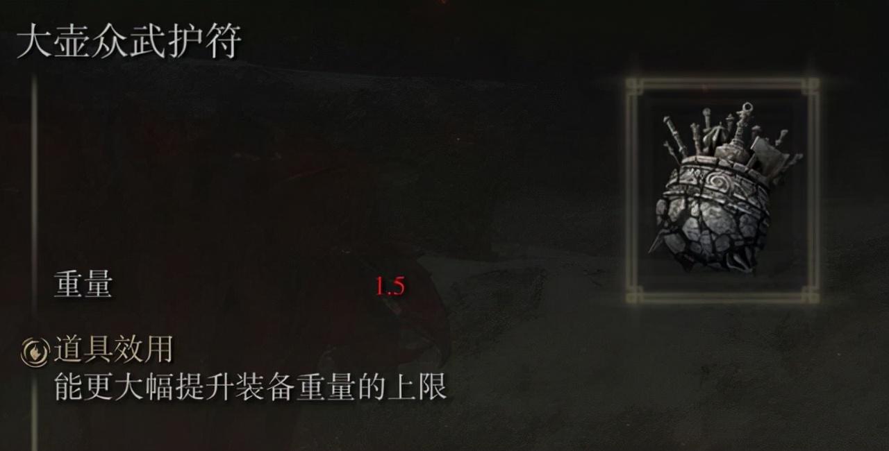 4、大众壶护符,我们拿重武器负重会比较吃紧,在精力不高的时候可以用用。