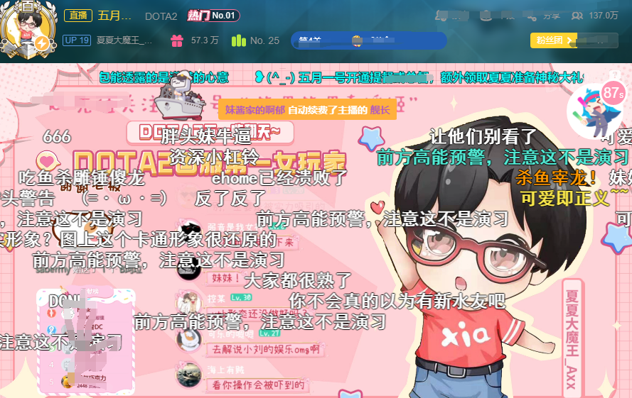 熟悉阿夏夏的粉丝们都清楚,最近阿夏夏可是有一波大动作的,没错,她加入了行业领头羊的B站,此次B站的直播首秀,阿夏夏也是让网友们感受到了Dota老粉丝的热情,分分钟直播间就百万人气了,都是直呼爷青回!能够做到这种影响力的Dota女玩家,也就只有阿夏夏了。