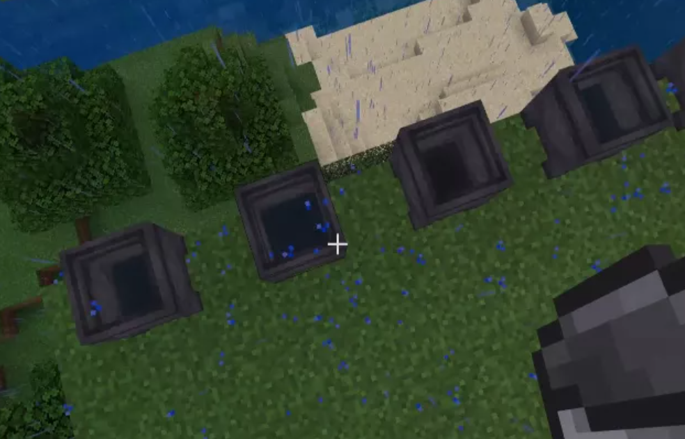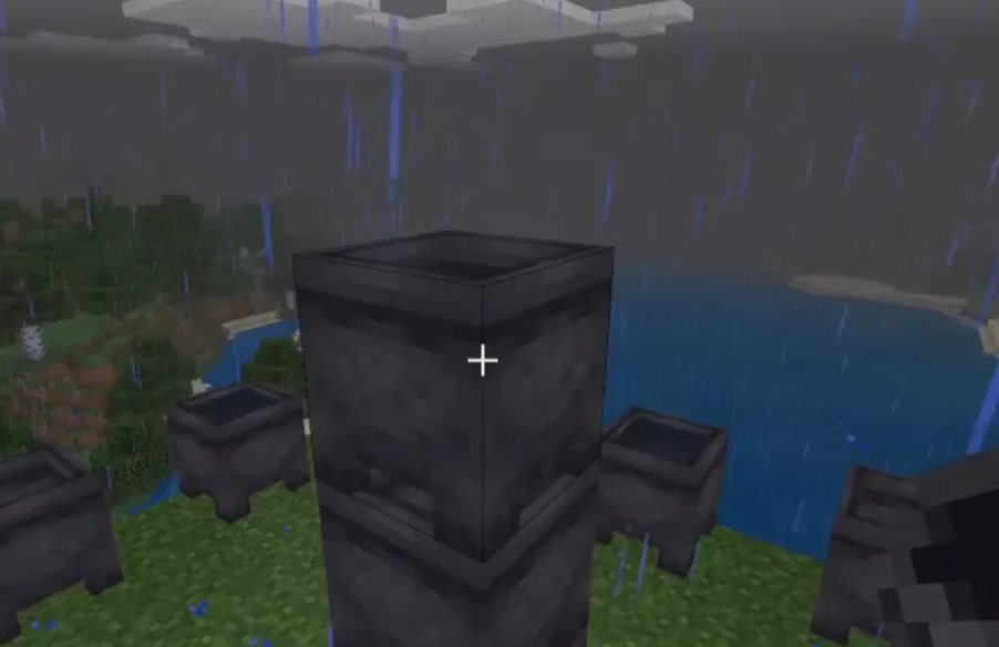 炼药锅可以收集雨水,而且玻璃瓶从地上的一格水中可以无限取水,3个水瓶倒在炼药锅中就可以将它装满。