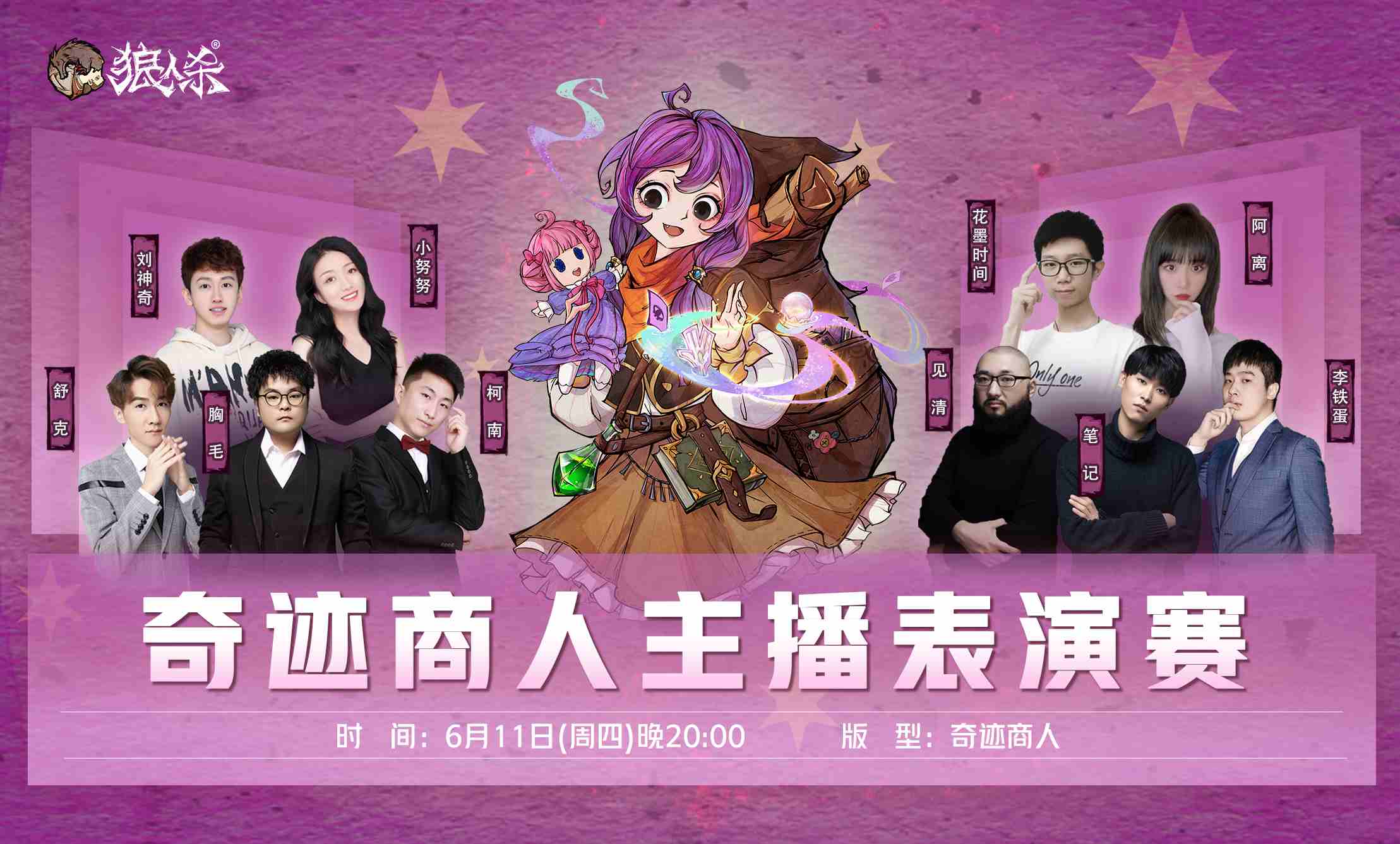《狼人杀》前不久全新角色奇迹商人正式登场,也让不少玩家纷纷质疑,有了奇迹商人的强力技能辅助,是不是狼人阵营就很难胜利?为了帮助大家更快理解角色基本玩法,在上周《狼人杀》特地邀请到了12位明星主播为大家带来了一场有趣的奇迹商人表演赛。
