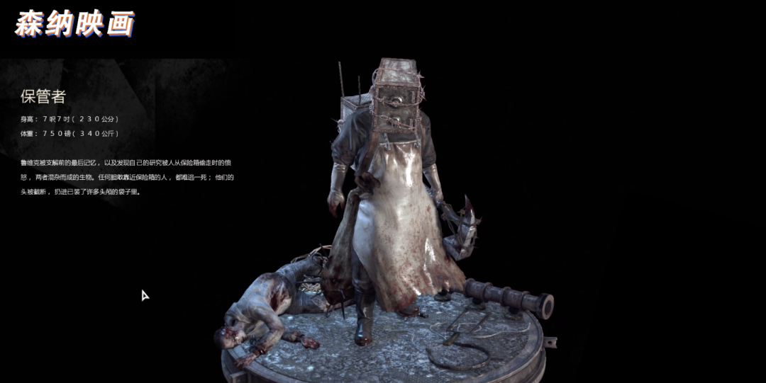 不过它最可怕之处在于,“保险箱头”你击杀它后,它会从地上其他的保险箱中重新长出来,再次对你发起攻击。或者就算你逃离了,它也能选择自杀,然后从你最近的保险箱中再次复身变换位置。除非你选择逃跑,要不就是你能干掉该区域所有的保险箱,才能结束他的追杀。