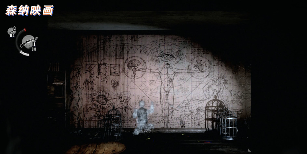 同时安全屋的尽头还有个脑部手术的座椅,看起来很吓人。实际上就是当你在游戏中击败敌人,在隐藏角落中收集的绿色凝胶,拿回这里后进行“大脑开发”。因此这绿色凝胶也俗称“脑白金”。大脑开发啥呢,就是对你脑部改造,提升智力,让你思考出如何在只有六发弹巢的转轮手枪中,装入七发子弹。