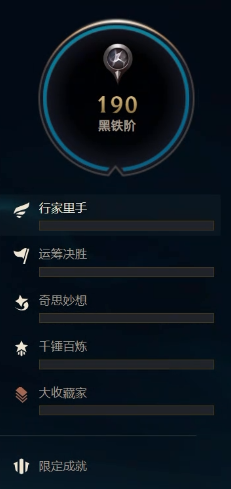 IT之家了解到,玩家可以“生涯”选项中找到最新的“成就”系统。目前,该系统包括“行家里手”“运筹决胜”“奇思妙想”“千锤百炼”“大收藏家”以及“限定成就”6 个大类。