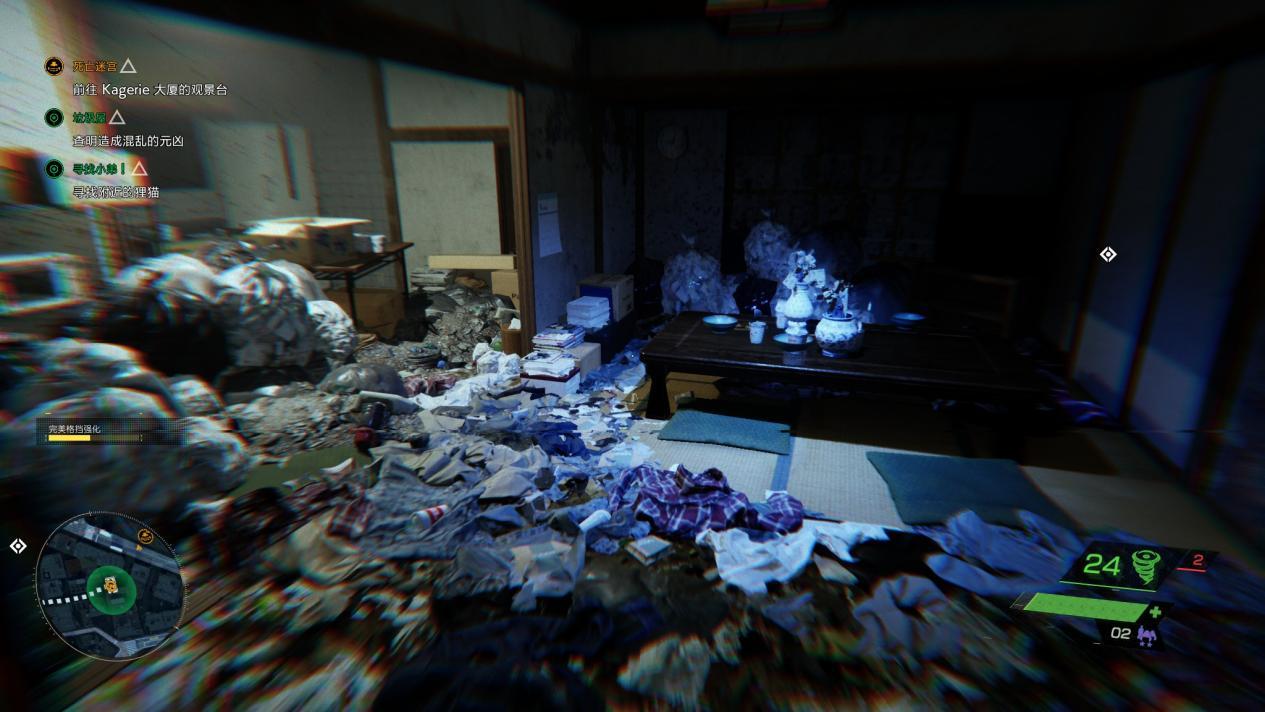 这一点在steam的通关率上也大概可见一斑——在发售之后两周不到的时间达到了18.7%,所以在做好了玩法缺乏深度、乏善可陈的心理建设后,我游玩的心态也从“试试看,如果游戏摆烂我也摆烂(弃坑)”作为了开始,不想居然在几天时间内一口气玩到了通关(虽然这要感谢隔离),且不但通关,甚至做完了绝大部分的支线任务和收集——耗时:25.9小时。这个时间说明了游戏的内容量确实非常有限,不过好消息在于,如果你不是一位之前育碧沙盒已经吃到吐的玩家,那么在《幽灵线:东京》中来体验一把与鬼共舞的逛街之旅其实也还算是有趣。