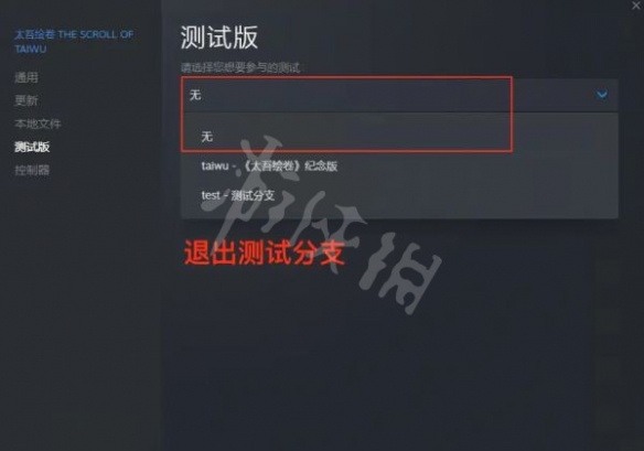 Tips:如果您需要退出测试分支,只需要在“测试版”页面选择“无”即可,选择完成后Steam将会自动更新