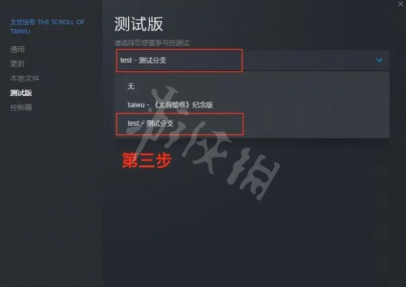 第三步:选择“teat-测试分支”即可进入测试分支,选择完成后Steam将会自动更新