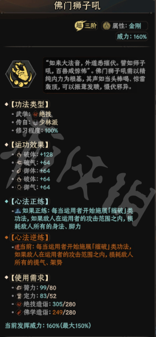 太吾绘卷游戏中有很多很强力的武学,许多小伙伴不知道跑少林派厉不厉害,少林派有哪些强哪里的武学,下面小编就带来太吾绘卷佛门狮子吼武学介绍,一起来看看吧。