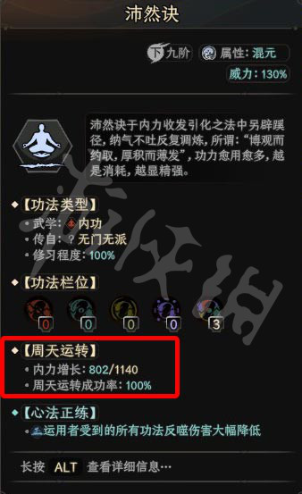 另外,只有将内功功法读完后,下方的【周天运转成功率】才会达到100%,所以运转前最好先将功法读完。