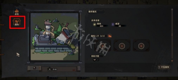 对于废墟等无用且碍事的建筑可以安排村民进行拆除并获得一定的资源。