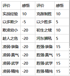 功法:和战斗评价有关,加成值=每场战斗合计感悟中的最大值。因为基础概率存在上限,特意刷高也无甚必要;