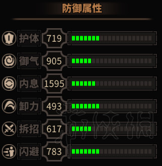 测试对象为同一个人,均为五仙教教主(有天蛇换骨功,当靶子才耐用),下图为对方的防御属性。