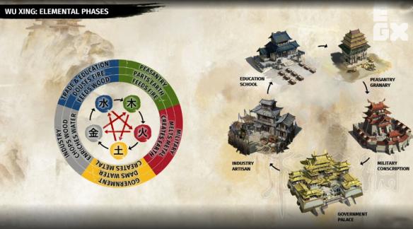 此次全面战争三国将引入五行系统,该系统不仅影响战斗,在内政方面也会起到很大的作用,具体如下: