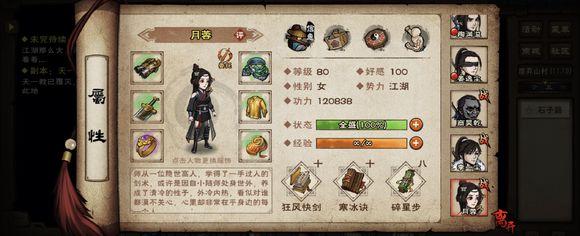 - 秘笈:归元(过的时候没满)+太初+庖丁 ,顺便吐槽下我只有这3个秘笈,少林秃驴菠萝蜜害我2个月没有偷到过一本完整的少林秘笈,你那么强还是干不过冷月大师姐,冷月PVP无敌的存在!