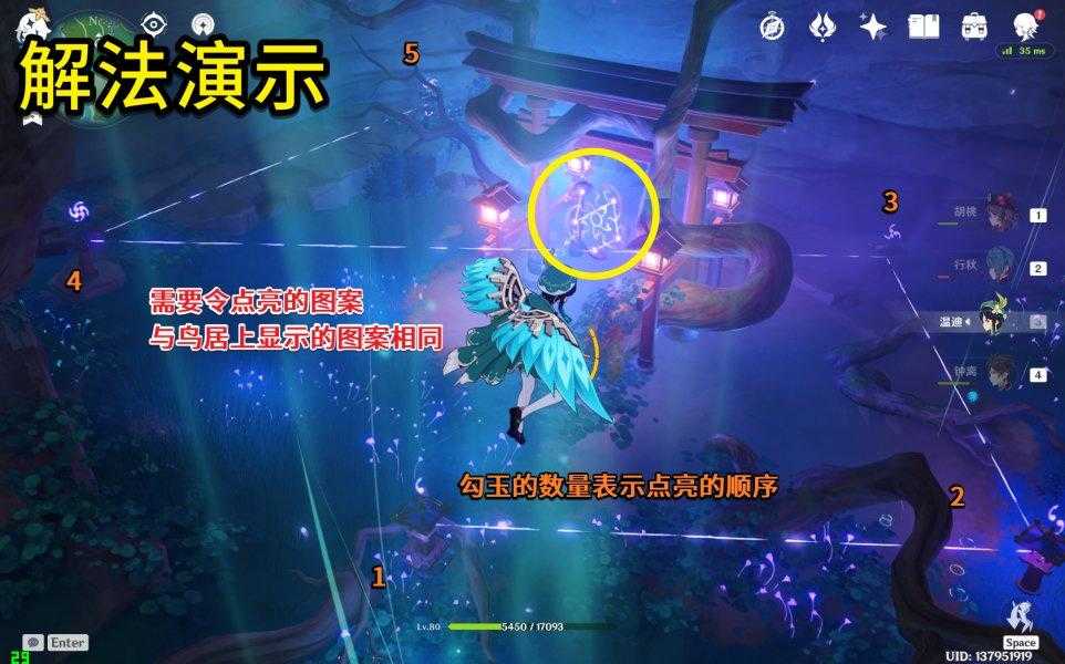 放入镇物后,调整各石台上勾玉的数量(点亮顺序),让祝祷的图案和鸟居上显示的图案相同。