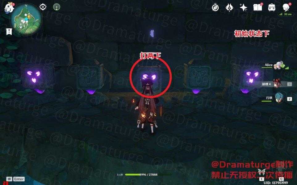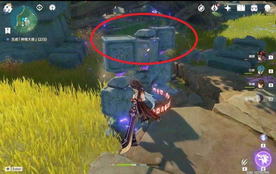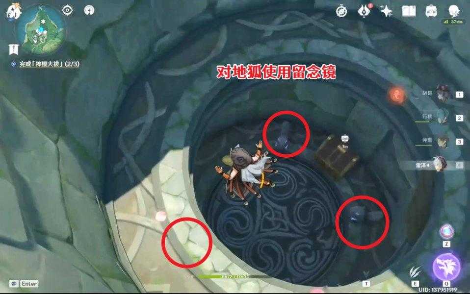 解谜攻略:使用小道具「留念镜」,观察特殊的「地狐」雕像,可以看到过去发生的影像。活用元素视野,「地狐」雕像在元素视野下是白色的。