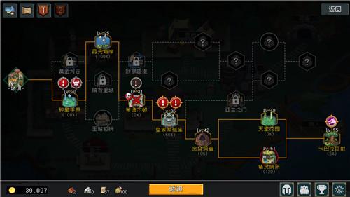 游戏分为四个章节,每个章节有若干不同的关卡,玩家可以选择其中一条道路前进,开启相应关卡进行游戏。队伍在关卡内以放置战斗的形式获取资源、提升小队战力。每个关卡内还会触发不同的事件,这些事件种类多种多样,难度也各不相同,玩家可以根据自己的实力,选择任务完成来获得收益。