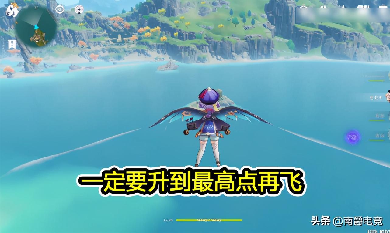 风属性能激活四叶草,原地产生风场,我们就可以借助风力直接飞到爱心岛上面。这里还有几个注意点,产生风场的时候,大家不要急着马上就飞,因为四叶草距离爱心岛还是很远的,我们要借助风力上升到最高点的时候再开始飞,另外,爱心岛的位置是在正北方向,升空之后很明显,直接沿着直线飞过去就可以,会刚刚好降落在爱心岛上。