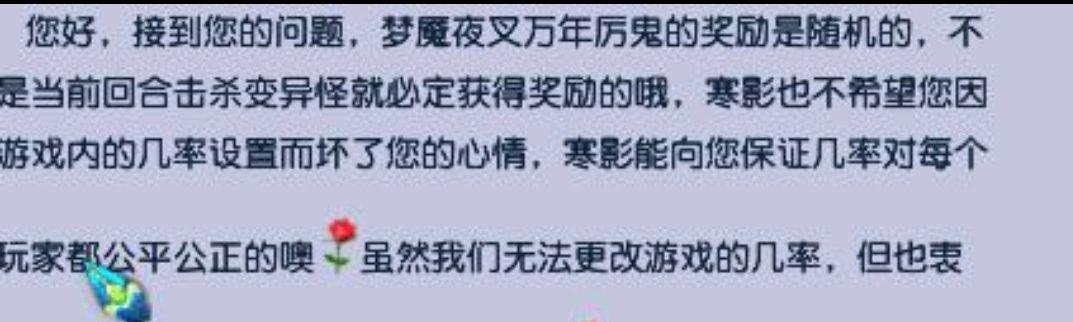 首先第一回合你要保证主怪不死而小怪死,其次你要保证第二回合秒出去的同时主怪是一速召唤。说简单一点,万年厉鬼的正确杀法就是第二回合如果召唤变异就要直接杀死,第3回合杀死没有奖励。再者就是万年厉鬼的夜叉是不能封的,如果你要是封了主怪而打死小怪,然后夜叉再召唤出变异一样是没有奖励的。这个问题应该是设置只有变异,并且在第二个回合打死才会有奖励的设定。