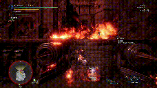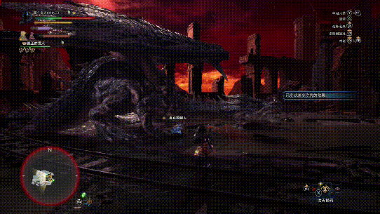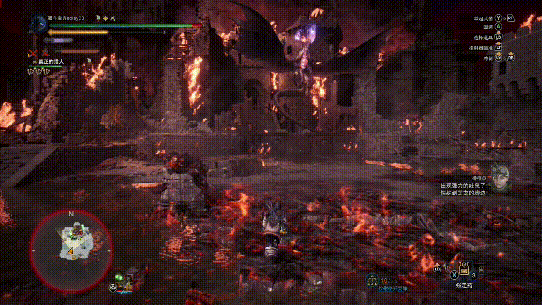 转入二阶段时,黑龙释放全屏大招。根据NPC提示,需要到左侧瓦砾处躲避,此时注意不要过早出来,等到瓦砾被融化后再行动,可以趁此时间补补状态和磨刀。此阶段下猎人可以使用【移动式速射弩炮】。