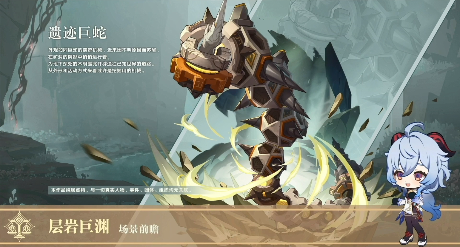 层岩巨渊的新怪物遗迹巨蛇,外形有些独特,机制未知,不会是钻地的怪物吧?