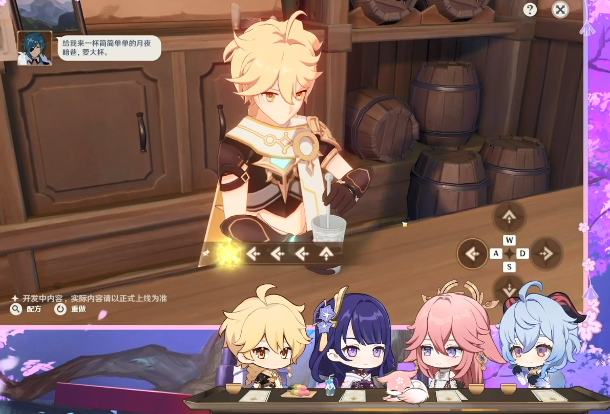 活动曲生酌微梦,在这个活动中,旅行者会在迪卢克的酒馆打工,根据NPC的需求调制饮品,注意看实机图的左上角,这些NPC中还有卡池里的角色,终于可以给优菈喝自己做的饮料了~
