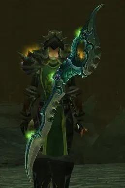 3移行魔刃是一把会变身的剑有两种形态,剑形态和斧形态并且自带邪能特效,变身效果特别酷炫斧形态是寸寸碎裂显示剑形态,剑形态是逐渐组装!是6.0德拉诺版本黄金挑战获得,由于德拉诺版本的结束,现在已经绝版,属于是老玩家专属了!