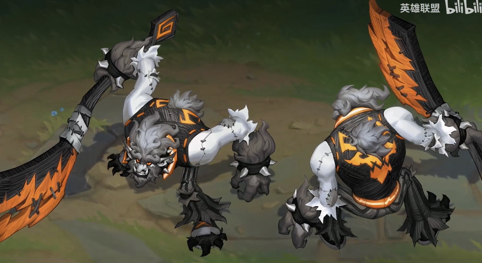 -一位新的上路坦克英雄,来自恕瑞玛未开发的新地区-纳祖玛城,会拿着一个硕大的武器【影拓锋】,可攻可防的的一把双形态武器