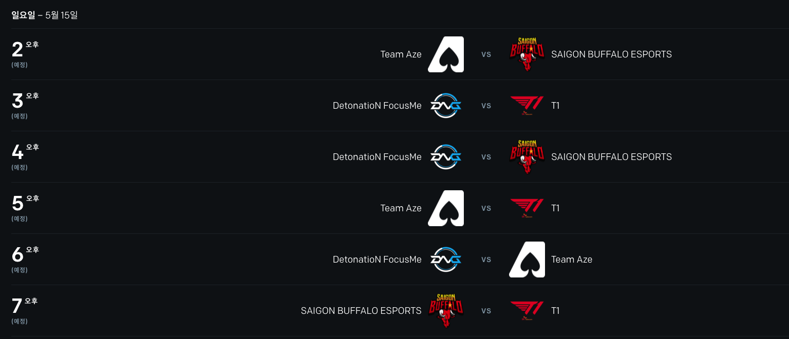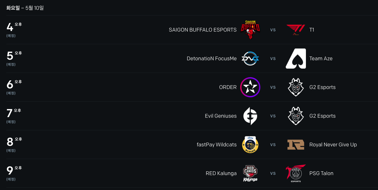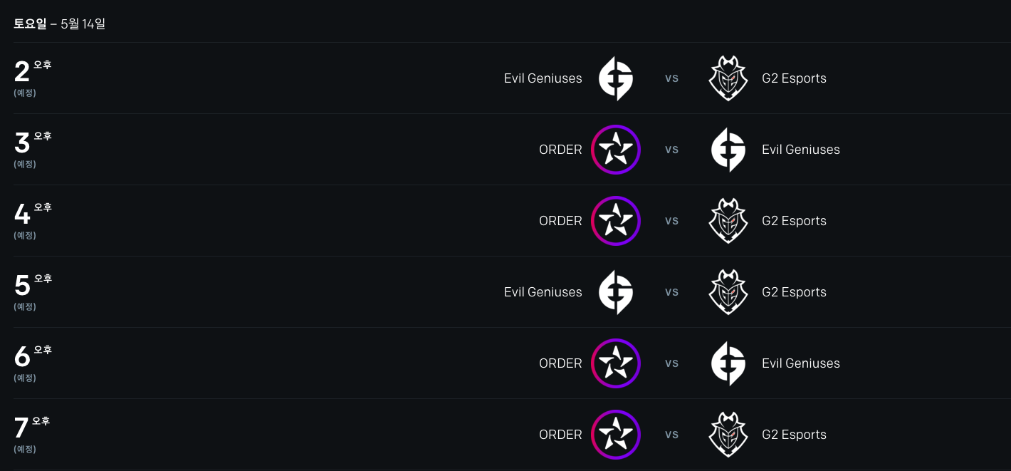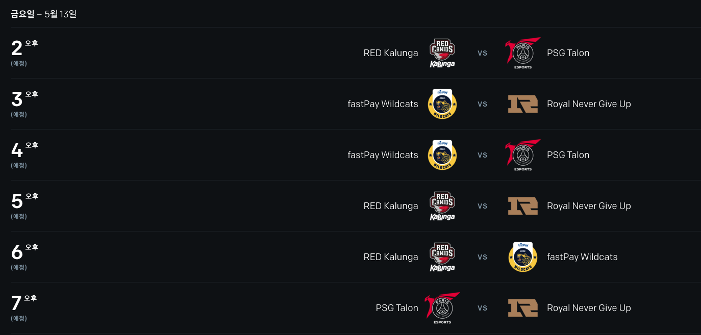 5月13日15:00、17:00 、19:00分别对阵IW、RED和PSG(如下图)