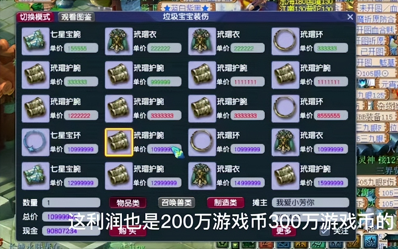 画魂建议小伙伴们玩105的炼妖石(成本低),115、125、135、145的炼妖石建议用宝宝来炼化,用宝宝炼化出高灵的几率大。出的天眼珠、三眼天珠、九眼天珠的灵力高摆摊卖的价格就会高赚的就会越多。
