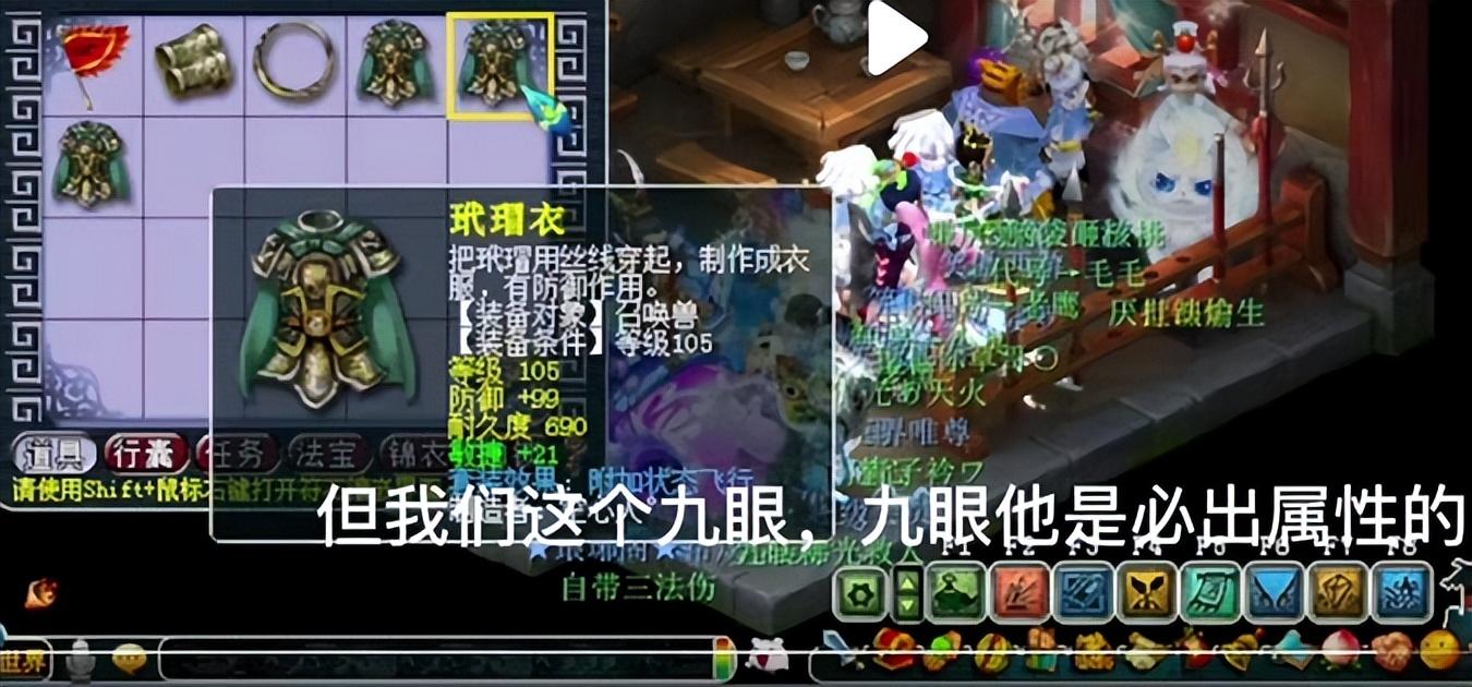 天眼珠大于90灵力的可以摆摊卖或者给宝宝装备增加耐久。如果学了灵石技巧的话低于90灵力的天眼珠分解会获得速度灵石、伤害灵石、气血灵石、灵力灵石、防御灵石、躲避灵石。保底一个运气好可以获得两个哟。三眼天珠、九眼天珠可以用对应等级的图册打造成召唤兽装备。天眼珠出属性的几率是5%三眼出属性的几率是30%九眼是必出属性的。三眼、九眼低灵力的建议做护腕因为护腕命中率要求低。中灵力建议做宝宝环位置,环的速度影响也不是很大。但是宝宝衣服的防御就很重要建议用高灵力的三眼、九眼。这时候就要看运气了。如果只想赚钱不想玩几率的小伙伴就停在做天眼珠的地方,就把垃圾的天眼珠分解好的自己摆摊卖或者打包卖给商人都可以都是稳赚不赔的。如果想玩几率的小伙伴画魂衷心祝愿你获得高属性的宝宝装备。