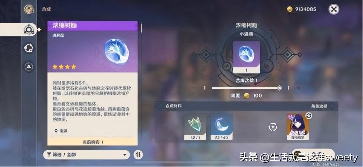 制作浓缩树脂需消耗晶核*1、树脂*40,可以在地脉花和圣遗物本使用后获得双倍奖励,这是晶核的核心用处!
