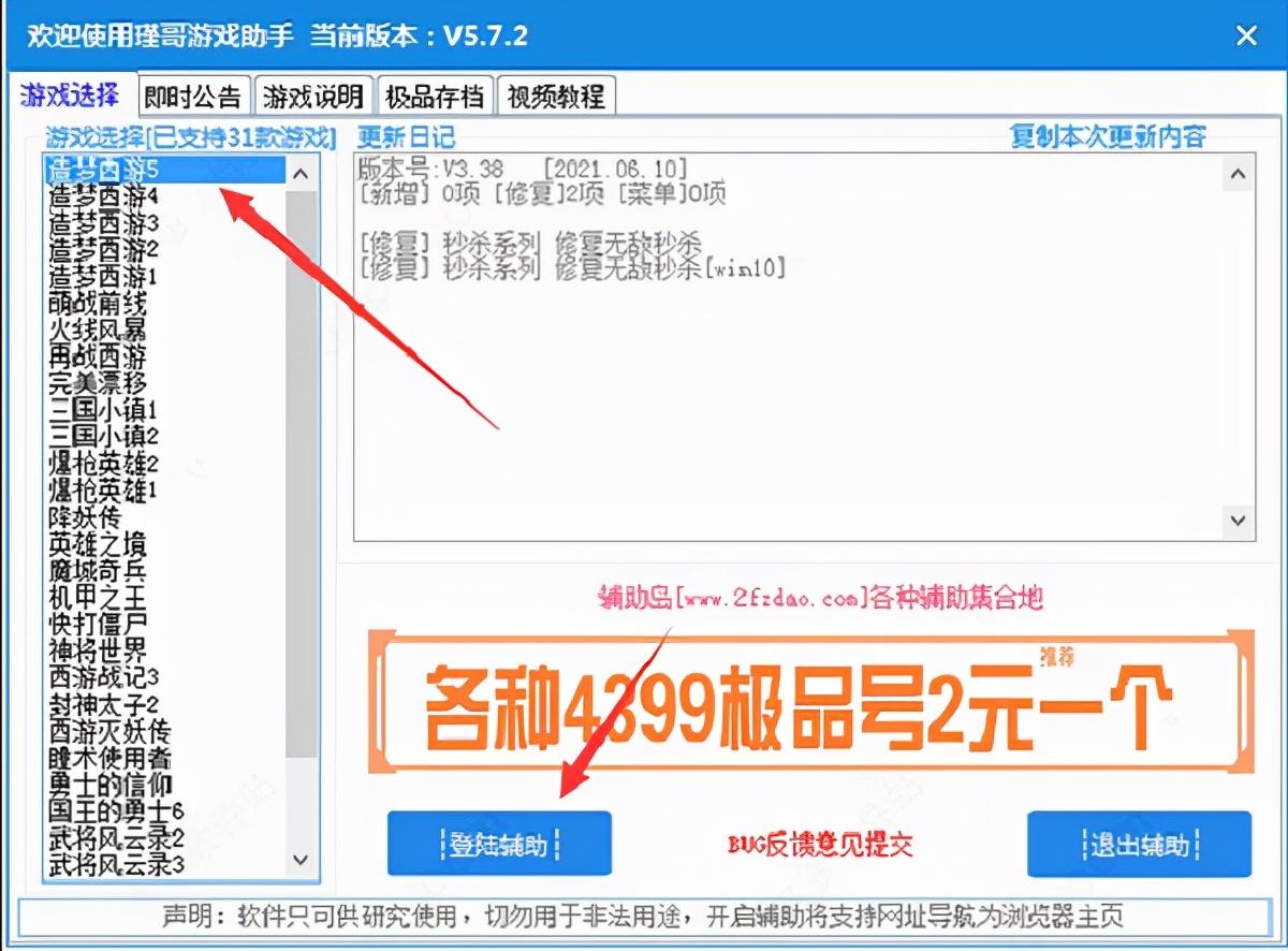 2、首先双击“.exe”文件即可打开辅助,选择造梦西游5游戏,点击登录辅助;