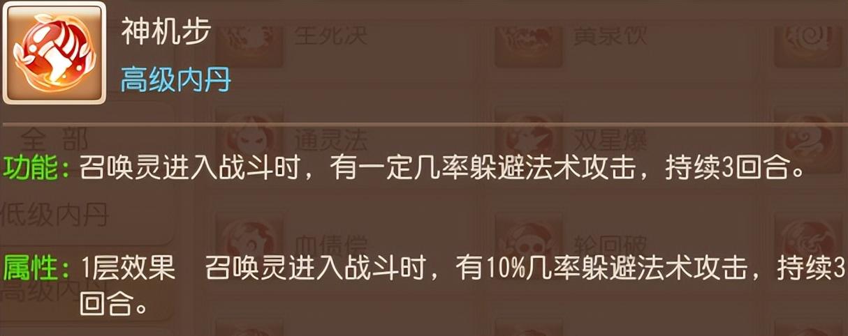 与龙魂玉类似,通过躲避效果来增加法系抗性的神机步内丹也十分冷门,大多数时候都很难见到使用神机步内丹的龟速。