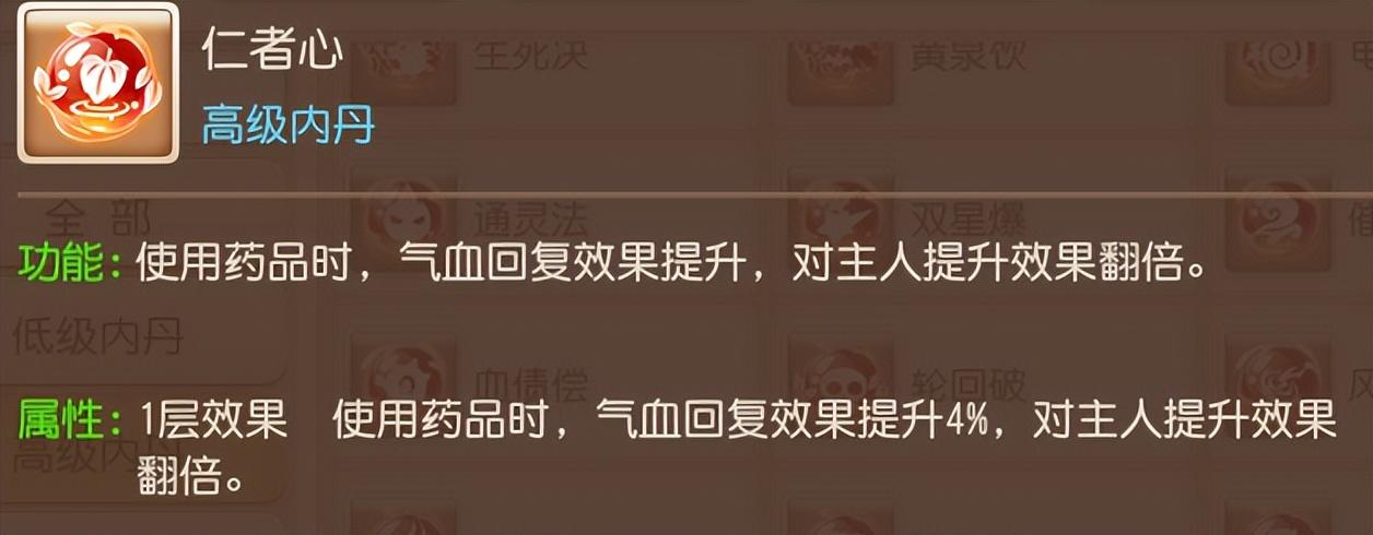 阴阳护和仁者心两种内丹不同于那些保证龟速自己生存的内丹,它们的作用主要体现在保护人物单位上。