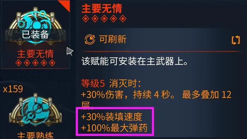 信条典客特别特别适合使用赋能【主要无情】,5级赋能后能带来48发备弹与3秒换弹,不能说毫无作用,只能说功效极大。