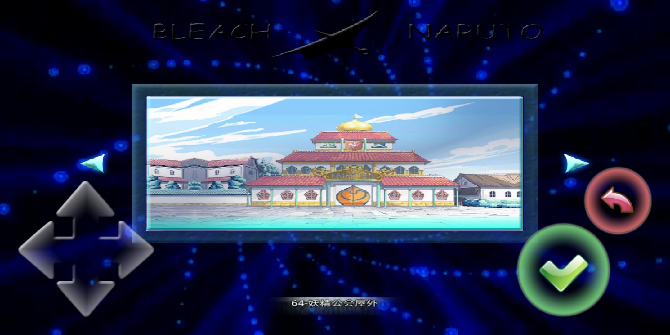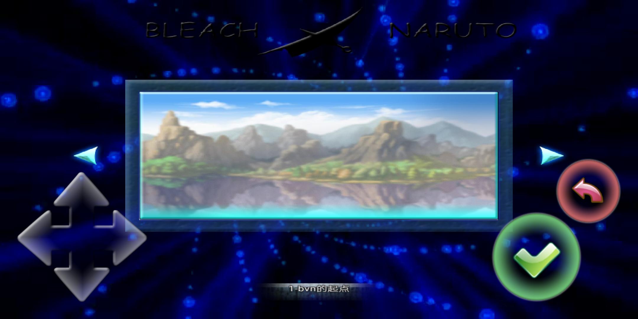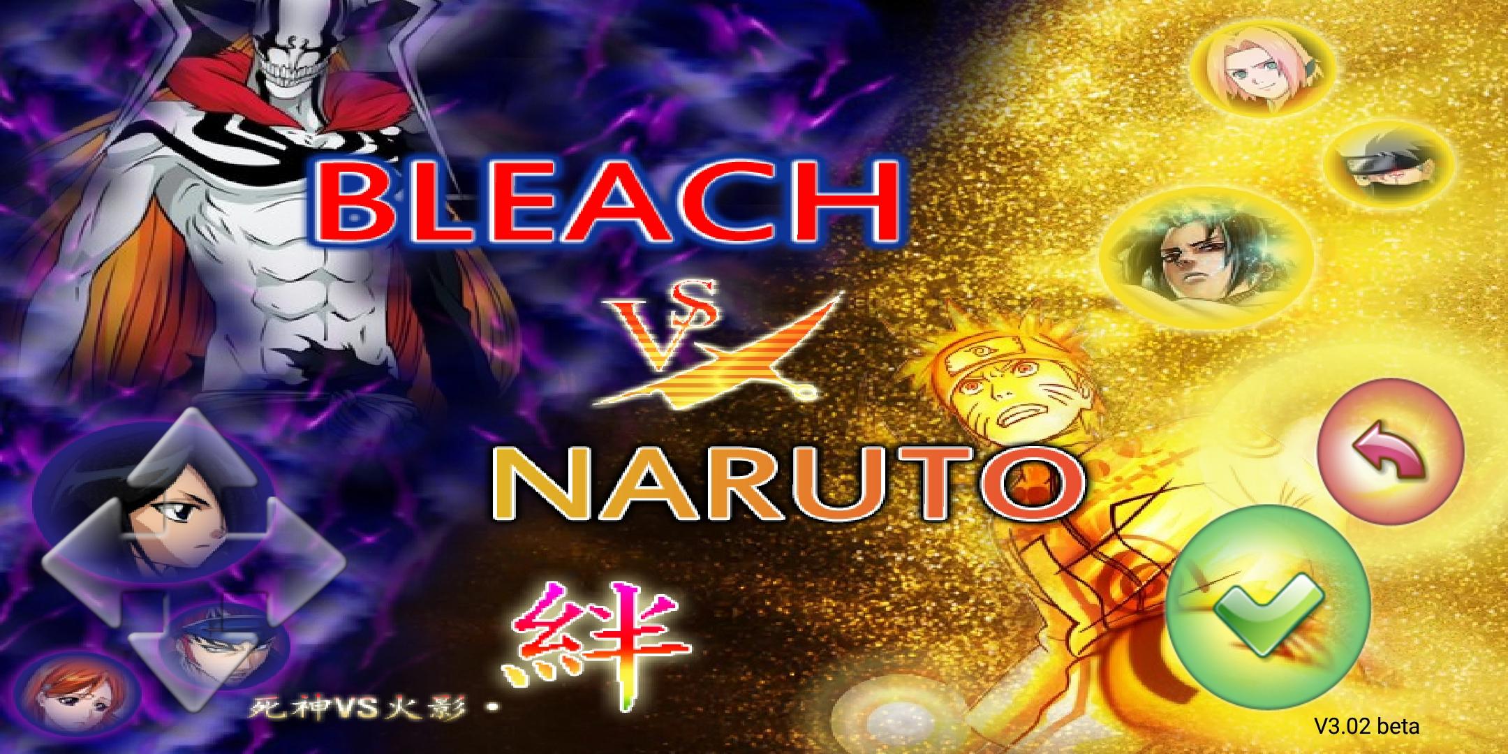 游戏界面就是死神与火影忍者的画面,标志性的人物,一户的虚化,鸣人的黄金战袍。