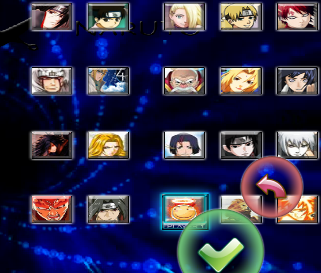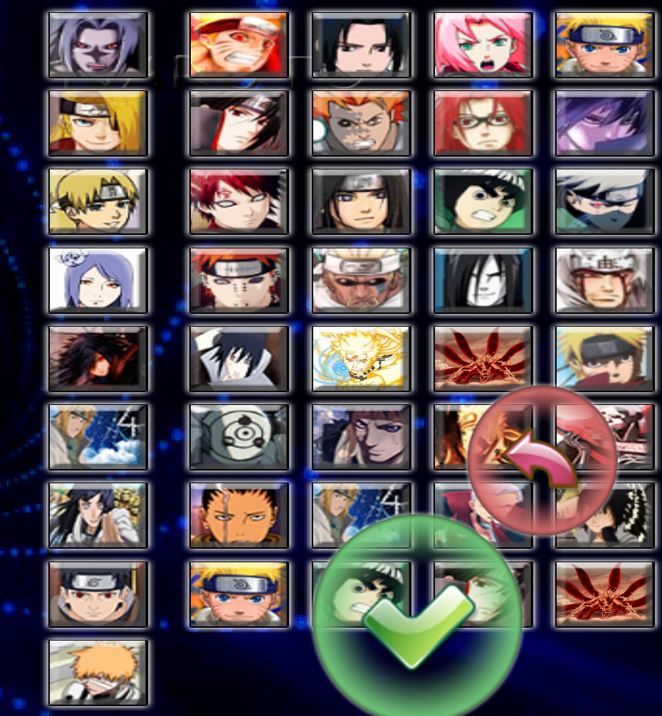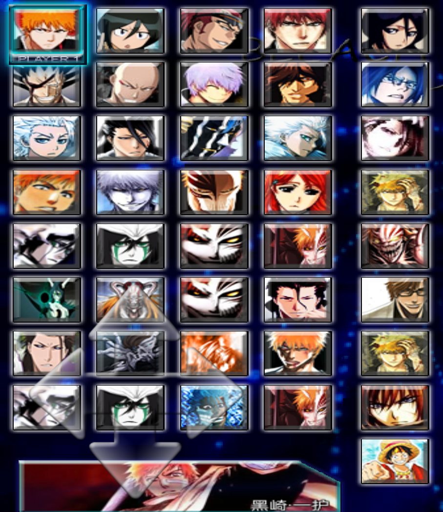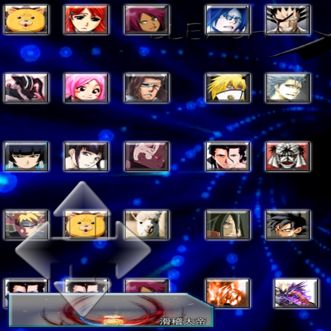 选人界面如下,左边是死神里面的人物,右边是火影里面的人物,中间就可能比较奇怪了,啥都有......