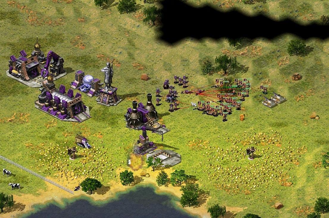 此外在《红警2》原始版本,想要靠复制中心刷钱,也得拥有双基地。