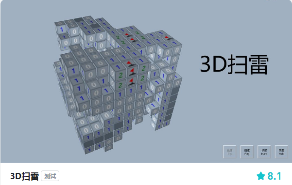 而今天也不介绍别的,正是是一款全新的扫雷游戏,最大的变化就是从二维变成了三维立体,而它的名字也简单粗暴——《3D扫雷》。这款游戏开发并没有什么公司或是工作室来头,而是一名学生作者b站同名up主“敲可耐的咕魂君”在学习软件过程中研发的一款小游戏。即便如此这款游戏在taptap上有着8分以上的好成绩,看来对于扫雷的情怀大家都是一样的。