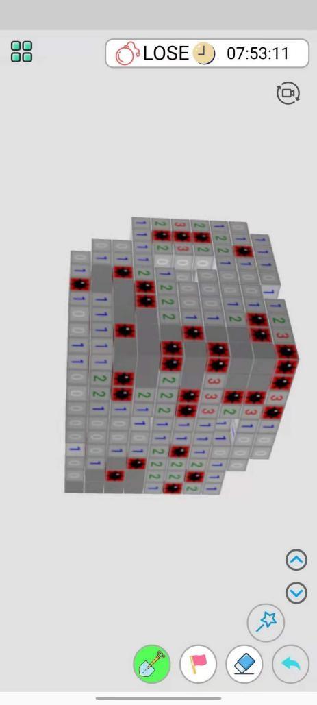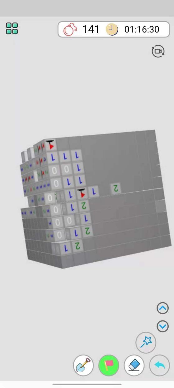 基本操作讲解到这就完了,到了上手玩起来其实就能够陆陆续续发现不少游戏上的问题,首先就是立体感的问题。我这里说的立体感并不是指它的3D建模还不够立体,而是指3D扫雷没有真正的立体起来,而是还停留在了2D扫雷。