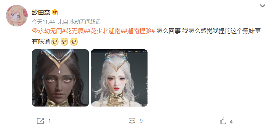 一时间网上出现了数以万计的迦南捏脸皮肤分享,不论肤色黑白都十分好看,莺莺燕燕场面堪比101选秀现场。搭配上【花无痕】皮肤更是天作之合,甚至于将之前玩家中的热门角色胡桃的热度都比了下去,看来这波是迦南翻身做主了!