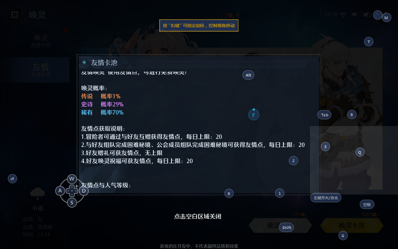 友情卡池出金率只有1%,另外无保底,这个随缘弄就好,弄些紫色碎片升级角色的作用比出金更有意义。