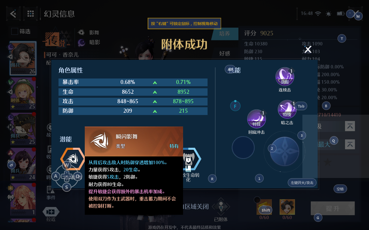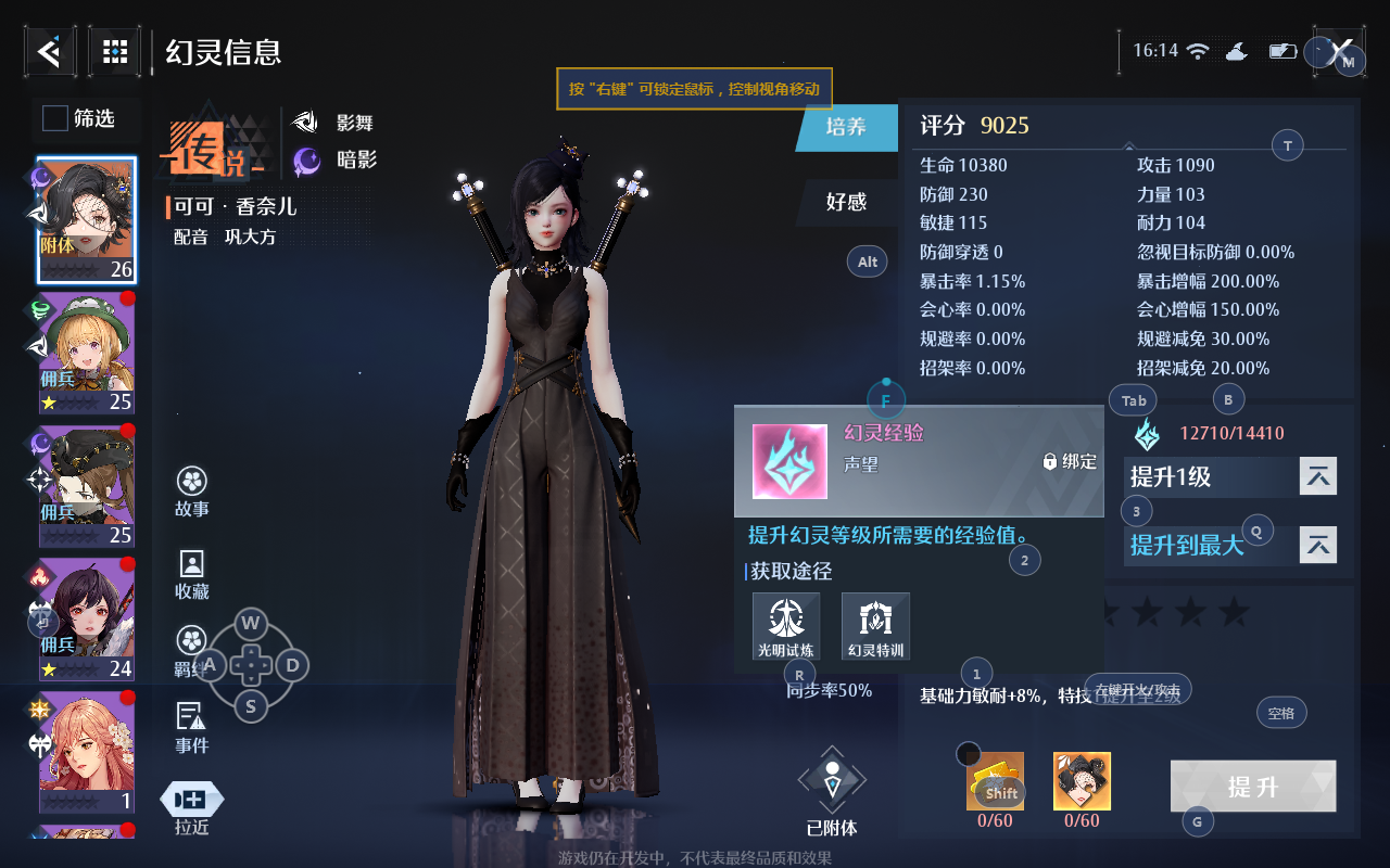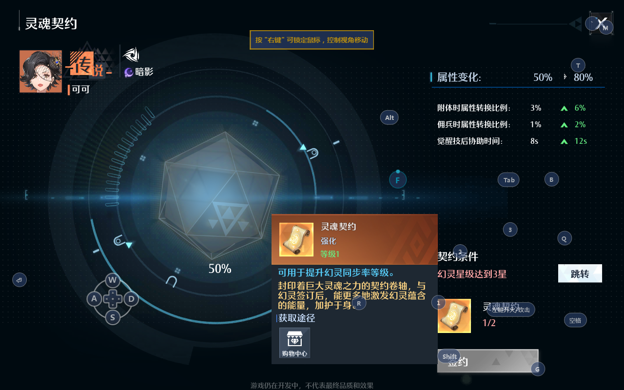 同步率:提升附体与佣兵时的属性比例,需要消耗灵魂契约,对于主培养的幻灵进行同步率提升是必须的。
