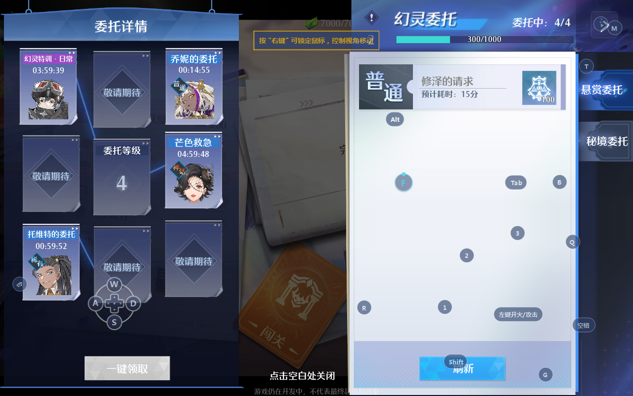 委托:每日会刷出不同品质的委托,能够获得钻石金币等奖励,需要派遣不同的幻灵前往,偷懒的玩家选择一键派遣即可。另外委托的消耗时间与上阵的幻灵星级有关,这使得那些蓝紫的幻灵有了更多用处。